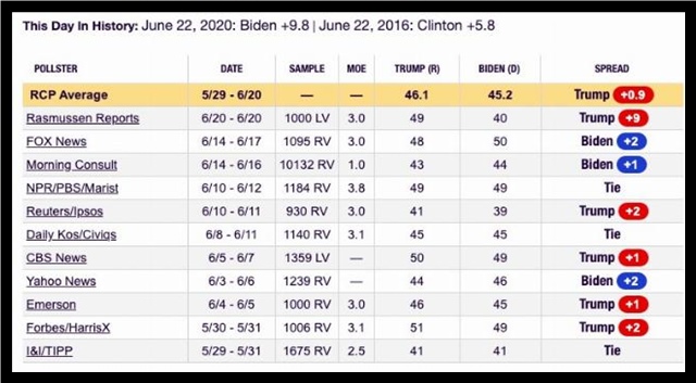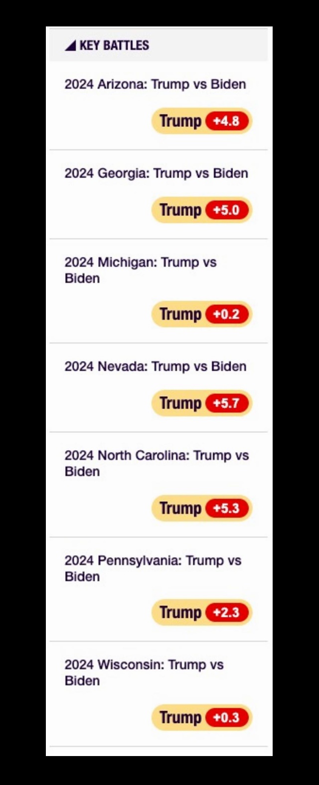 Seven. To end on a super optimistic note, one new poll—which is an obvious outlier—has Trump up by 10 points: