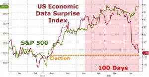 It’s been (almost) 100 days and stocks are higher, hype is at its peak, hope remains higher-ish… there’s just one problem, real economic data is collapsing…