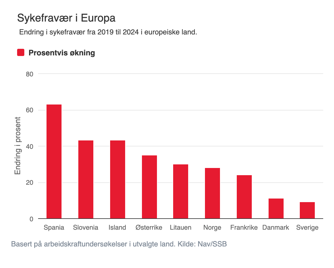 New figures from NAV show that the increase in sick leave in recent years is not unique to Norway [ah, let’s venture a guess: it’s going to be higher in those places with more coercive vaxx mandates while it will be lower in Sweden—wanna bet?]