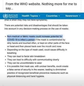 And the WHO has actually said that wearing a mask increases our chances of becoming infected, not decrease.