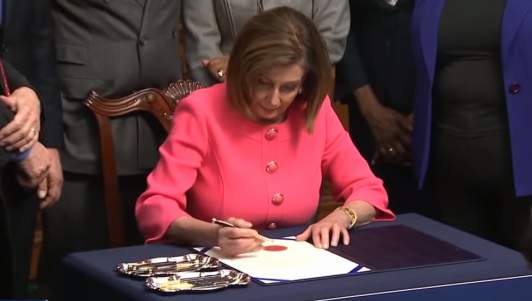 Pelosi Delays Stimulus Package Until Her New Souvenir Pens Come In