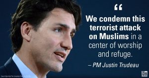 A MASS SHOOTING at a Quebec City mosque last night left six people dead and eight wounded. The targeted mosque, the Cultural Islamic Center of Quebec, was the same one at which a severed pig’s head was left during Ramadan last June. Canadian Prime Minister Justin Trudeau called the episode a “terrorist attack on Muslims.”