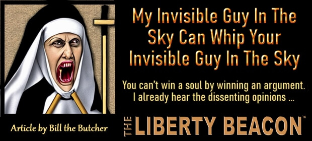 My Invisible Guy In The Sky Can Whip Your Invisible Guy In The Sky Commentary by: Bill the Butcher You can’t win a soul by winning an argument. I already hear the dissenting opinions from […]