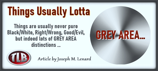 Things Usually Lotta GREY AREA… By: Joseph M. Lenard Things are usually never pure Black/White, Right/Wrong, Good/Evil, but indeed lots of GREY AREA distinctions. Sadly, most too lazy (or lacking functioning Grey-matter) to deal in […]