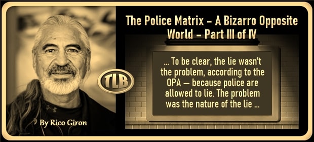The Police Matrix: A Bizarro Opposite World – Part III of IV “By TLB Contributing Author: Rico S. Giron “It’s a lie, but it’s fun,” an unnamed Seattle cop told his partner on body camera […]