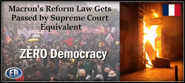 ER Editor: That the French Constitutional Council, France’s equivalent of the US Supreme Court, should go along with Macron’s pension reform hardly comes as a surprise. It’s clear there is ZERO democracy, ZERO room for […]