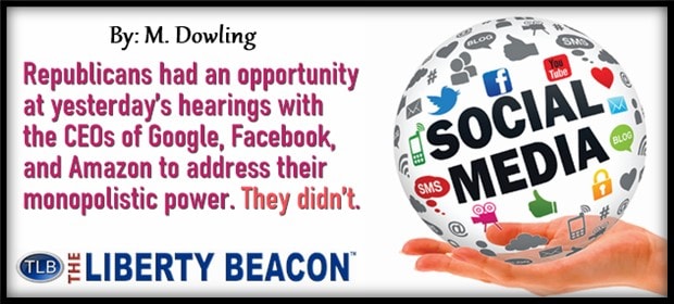Republicans missed their opportunity at Big Tech hearing Wednesday By: M. Dowling Republicans had an opportunity at yesterday’s hearings with the CEOs of Google, Facebook, and Amazon to address their monopolistic power. They didn’t. Rep. […]