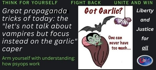 Great propaganda tricks of today: the “let’s not talk about vampires but focus instead on the garlic” caper