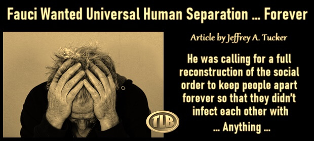 Fauci Wanted Universal Human Separation Forever By: Jeffrey A. Tucker While millions were locked down, forbidden from going to events or even church, and the schools and arts were shut down, people kept asking a […]