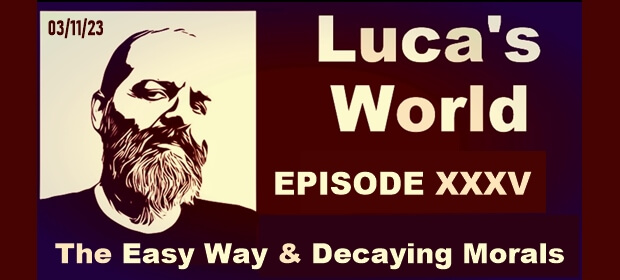 LUCA’S WORLD ~ Episode XXXV ~ The Easy Way & Decaying Morals LISTEN TO SHOW BELOW INTRO ARTICLE Your Host: Luca Majno More and more, it seems, just hours before the show, anxiety sets in […]