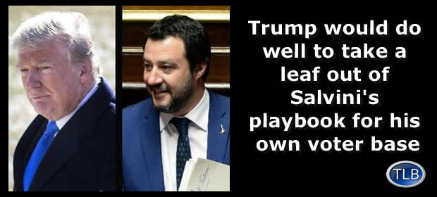 During the 2016 campaign, Matteo Salvini visited Donald Trump and pledged his support. [Donald Trump gets my backing, says Italy’s Matteo Salvini, by Stephanie Kirchgaessner, The Guardian, April 26, 2016] At the time, it looked like a European fringe candidate drawing inspiration from America.