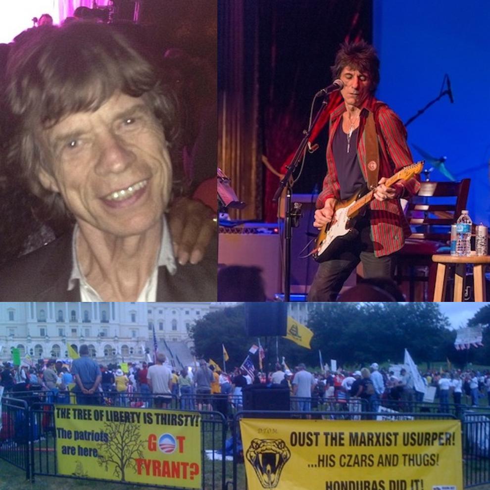 THIS video ad for an upcoming TEA Party event near my home, perfectly illustrates this. Baseball, mom, apple pie, waving flags, weeping eagles, ‘our warriors in harm’s way’…the gamut of Americana images…speakers breathlessly yelling into a microphone, pumping up the audience. The Rolling Stones’ 50th Anniversary Tour.
