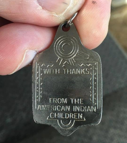 Suddenly, something told me to take Larry’s keys out of the ignition, and look at a medal that he had on his chain… and this is what I saw…