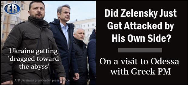 A missile strike hit Zelensky’s motorcade in Odessa before his meeting with Greek Prime Minister