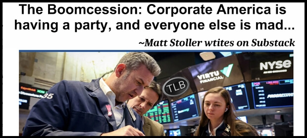 A boomcession, where the rich and corporate America experience a boom while working people feel a recession, is a very unhealthy dynamic. It’s certainly possible to create metrics to measure it, and to help policymakers understand real income growth among different subgroups. You could start looking at real income after non-discretionary consumer spending, or find ways of adjusting for price discrimination.