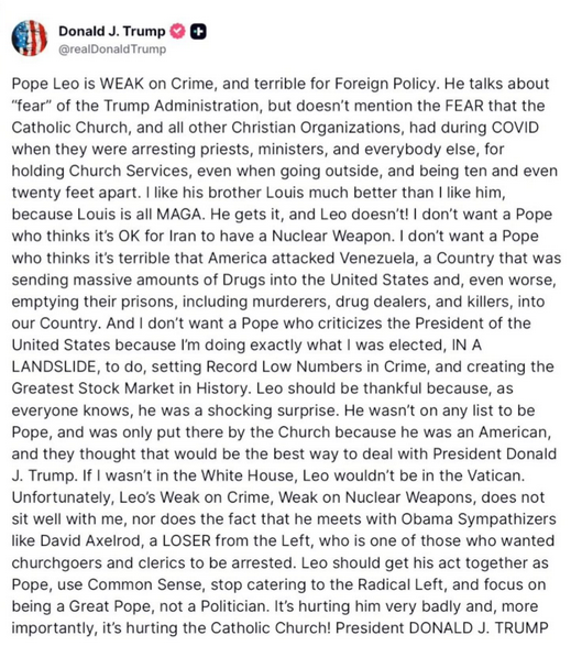 Trump’s tweet about Leo XIV