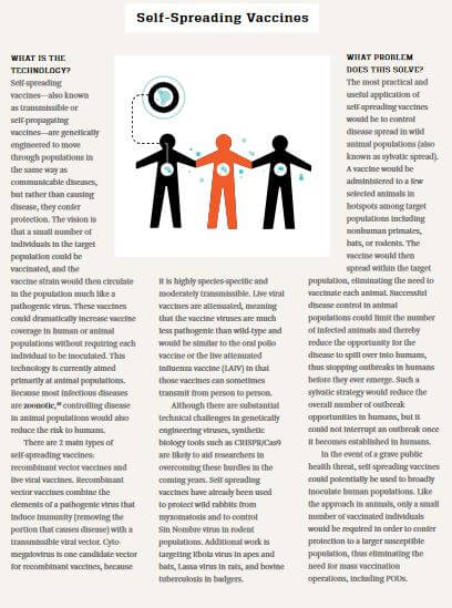 Self-disseminating vaccines for emerging infectious diseases has existed since 2016, according to this study by the US National Library of Medicine National health Institute.