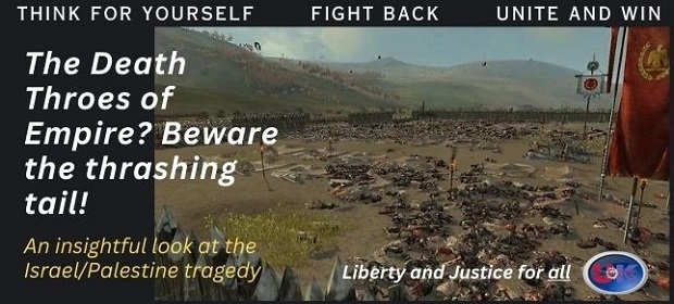 We should reflect upon the example of the Roman Empire and its ultimate fate: it fell because in the end there were just too many crimes and injustices and no-one took pride in Rome or being Roman anymore and were no longer willing to fight for it. Such a fate awaits criminal states currently exemplified by Israel unless good men seize the helm and introduce rational policies that enshrine, for example, Liberty and Justice for All.