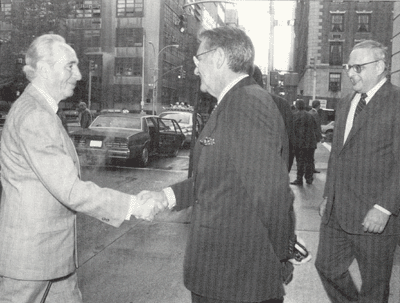 A Papal conspirator in the assassination of Israel’s Masonic Prime Minister, Yitzak Rabin, Freemason Shimon Peres, who was educated by Jesuits as a youth in Poland and now the Minister of Foreign Affairs of Zionist Israel, is being welcomed to the Jesuit General’s Council on Foreign Relations, based in New York’s Harold Pratt House, by its Masonic Chairman of the Board, Peter G. Peterson, and by one of its Directors, Leslie H. Gelb, on September 29, 1993. Shimon Peres also holds shares in the PLO’s public phone company, Paltel, in conjunction with the Bin Laden Royal Family of Saudi Arabia and Yassir Arafat! Since there is an obvious Bush/Bin Laden business connection through the CFR,s Carlyle Group headed by Edward Cardinal Egan’s Knight of Malta Frank C. Carlucci, why should not there be a similar connection between Peres, Bin Laden and Arafat? For they are all in the same Masonic Brotherhood’s “Invisible Empire” overseen by the sovereign Grand Master and Commander of all – the Black Pope.