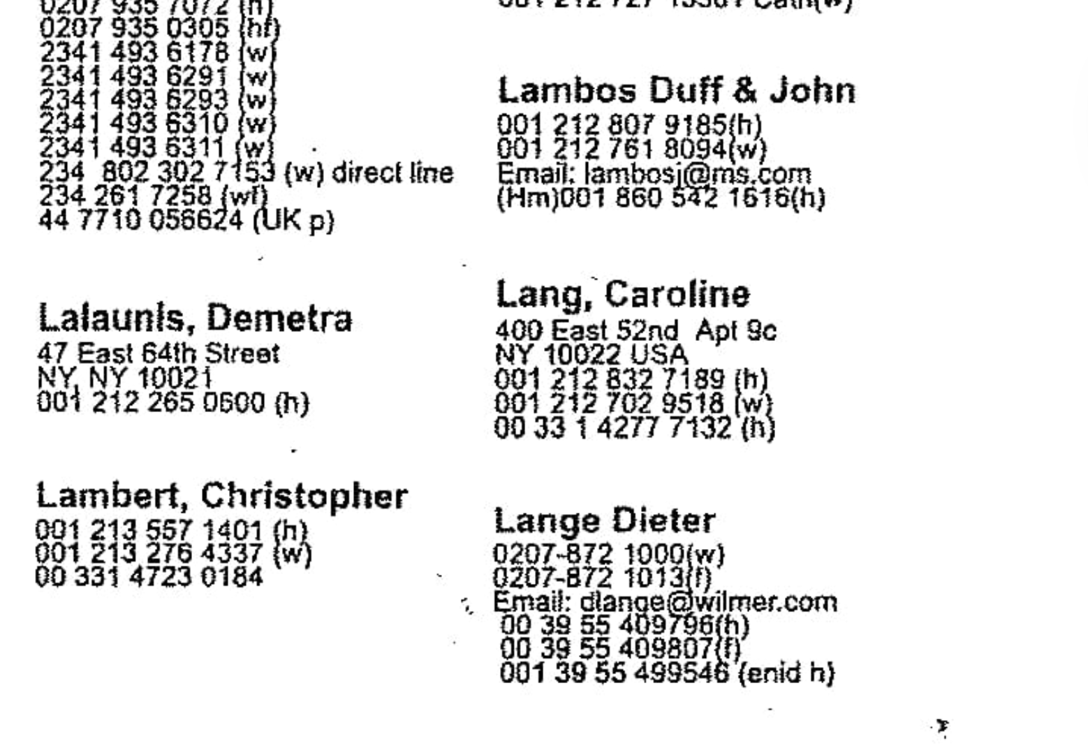 This is the background to a name that appears years later in a very different black book. When the FBI seized Jeffrey Epstein’s address book in the Florida investigation, they found an entry for Caroline Lang long before the Paris dinners she and her father now cite as the beginning of everything. The book listed three phone numbers and a New York address for her, apartment 9C at 400 East 52nd Street.