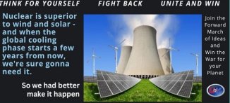 Electromagnetic pulse from high-altitude nuclear detonations would destroy the integrated circuits in all modern electronic devices[viii], including those in commercial nuclear power plants. Every nuclear reactor would almost instantly meltdown; every nuclear spent fuel pool (which contain many times more radioactivity than found in the reactors) would boil-off, releasing vast amounts of long-lived radioactivity. The fallout would make most of the US and Europe uninhabitable. Of course, the survivors of the nuclear war would be starving to death anyway.