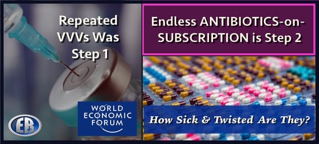 ER Editor: In focusing on antibiotics as the next truly mad step of rendering the population hooked on pharma drugs, Roger Koops permits us to see the ulterior motive of having long pushed antibiotics into animals, who form a key part of our food supply. Most likely they’ve (WEF) been DELIBERATELY creating antibiotic-resistant strains. In addition to the future health problems they’ve set up for the multiply Covid-vaccinated.