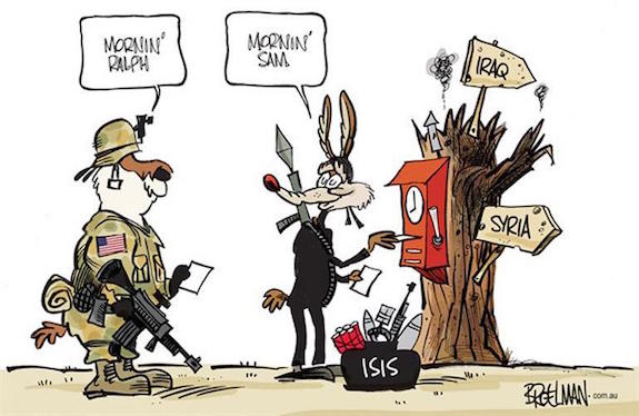 The American betrayal of their ISIS collaborators will go down in history as perhaps the greatest act of treachery ever recorded in the annals of military duplicity. The Islamic State has relied heavily on promises from their U.S. masters that they would have a clear path to an eventual victory without fear of bombs falling overhead. Not only are the various ISIL terrorist groups forced to scatter like rats without a moment’s notice, their meager mercenary pay does not even include compensation for hazardous duty. The word on the street or rather in the desert is that the professional terrorists are NOT at all happy with any of their war sponsors — American, Saudi Arabian or Israeli.