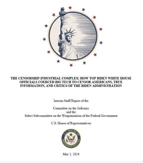 Not receiving nearly enough attention is the new report from the Committee on the Judiciary and the Select Subcommittee on the Weaponization of the Federal Government of the US House of Representatives.