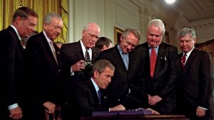 President G. W. Bush signs the PATRIOT Act into law, October 26th 2001
