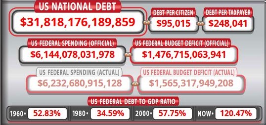Image Credit: Photo in the Featured Image (top) – by Clker-Free-Vector-Images from Pixabay, & In-Article image (added by TLB Staff) Screen shot from US Debt Clock.org