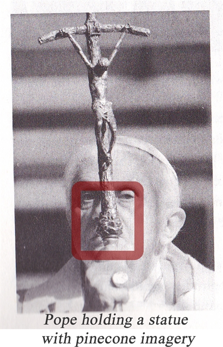 - The Catholic pope carries a staff with a pinecone directly above where his hand is positioned