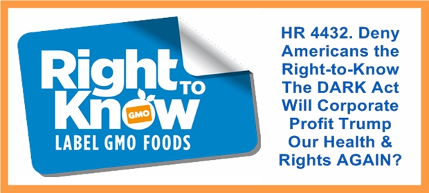The DARK ACT, House Bill HR 4432 wants to hide, not only the GMOs and pesticides in our food, they want to protect the profits of the entire chemical farming system.