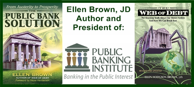 Ellen Brown is an attorney, president of the Public Banking Institute, and author of twelve books including the bestselling Web of Debt. In The Public Bank Solution, her latest book, she explores successful public banking models historically and globally. Her 300 plus blog articles are at EllenBrown.com.