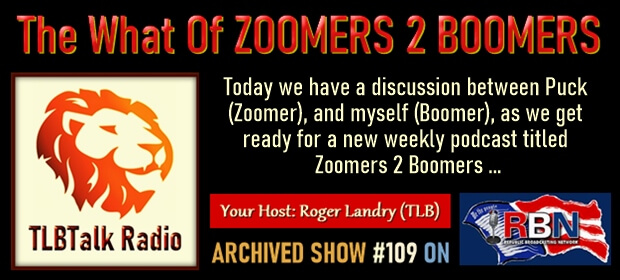 Hello again and welcome to Episode #112 of the TLBTalk Radio show on the Republic Broadcasting Network. Today’s title – TLBTalk Update & ZOOMERS 2 BOOMERS. Let’s wind our way through the chaos and tyranny … But first allow me to get through this intro routine …