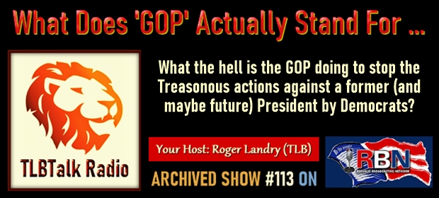 Hello again and welcome to Episode #113 of the TLBTalk Radio show on the Republic Broadcasting Network. Today’s title – What Does ‘GOP’ Actually Stand For …. Let’s wind our way through the chaos and tyranny … But first let’s get through this intro routine …