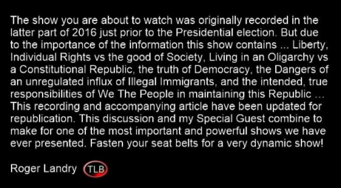 About the Host: Roger Landry (TLB) spent about three decades of his adult life either in, or working for the military, with about two decades working directly for the Military Industrial Complex facilitating DOD contracts. His awakening to Political, Economic, and Health realities was less than seven short years ago. Since that time he has founded The Liberty Beacon Project (TLB) consisting of over a dozen proprietary global websites, media projects such as TLBTV, and partner websites across the planet. He contributes regularly to multiple forums both in and outside of TLB Project. Most of his work can be found on the TLB Flagship website TheLibertyBeacon.com