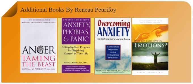 My guest Reneau Peurifoy holds a master’s degree in counseling and is the author of several books including, “Anxiety, Phobias, and Panic: Taking Charge and Conquering Fear”, “Overcoming Anxiety: From Short-Term Fixes to Long-Term Recovery”, and “Why Did God Give Us Emotions?”