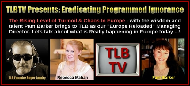 TLBTV Host Roger Landry (TLB): On this episode of Eradicating Programmed Ignorance we present: The Rising Level of Turmoil & Chaos In Europe. Some of you may have already seen some of our guest’s work on TLB’s website Europe Reloaded, and have or are realizing the level of wisdom and talent Pam Barker brings to TLB. We have a great discussion to share with you today.