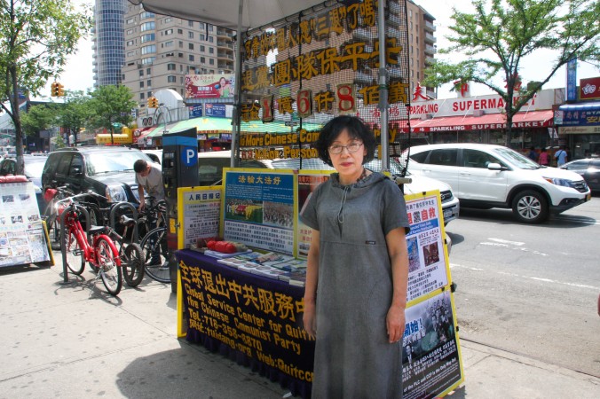 Linda Chun, 53, said she’s not sure what to do at this point. She practices Falun Gong, and one group in Flushing has on several occasions surrounded her, insulted her, and harassed her. She tears up when she starts talking about it.