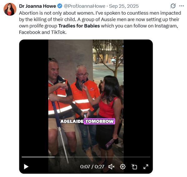 Launched just four months ago, Tradies for Babies has already grown to more than 35,000 followers across social media, with men from around the world submitting videos in support. Their mission is to help shift our culture toward valuing life, while working toward long-term goals such as providing practical support and building housing for women facing unexpected pregnancies and financial hardship.