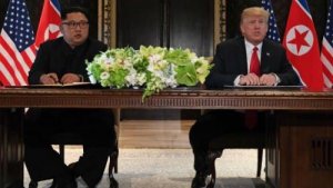 “The letter that we are signing is very comprehensive, and I think both sides will be very impressed with the results,” Trump said as he sat alongside the North Korean leader at a large wooden table in front of a bank of U.S. and North Korean flags to endorse the document, which however produced no new specific commitments from Pyongyang to surrender its nuclear weapons aside from broad generalities.