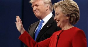 Republican presidential candidate Donald Trump, left, stands with Democratic presidential candidate Hillary Clinton at the first presidential debate at Hofstra University, Monday, Sept. 26, 2016, in Hempstead, N.Y. (AP Photo/ Evan Vucci)