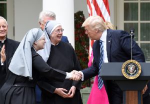 Attending the signing of the executive order were the Little Sisters of the Poor, plaintiffs in one of the HHS mandates case against the federal government. Trump honored two of the sisters who were present in the Rose Garden, calling them “incredible nuns who care for the sick, the elderly, and the forgotten.”