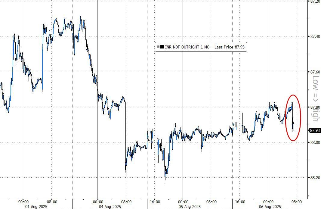 (ZH) Just as he warned yesterday, President Trump signed an executive order imposing an additional 25% tariff on India over its purchase of Russian energy, the White House said Wednesday hours after talks between the US and Russia over the war in Ukraine failed to yield a breakthrough.