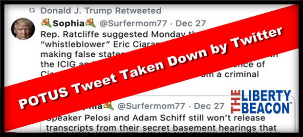 Twitter blamed a computer glitch after President Trump’s retweet of a post containing the name alleged whistleblower Eric Ciaramella mysteriously disappeared from his timeline. After ‘fixing’ the issue and restoring the retweet, the user was simply banned from the platform so that nobody could see the tweet, which quickly went viral.