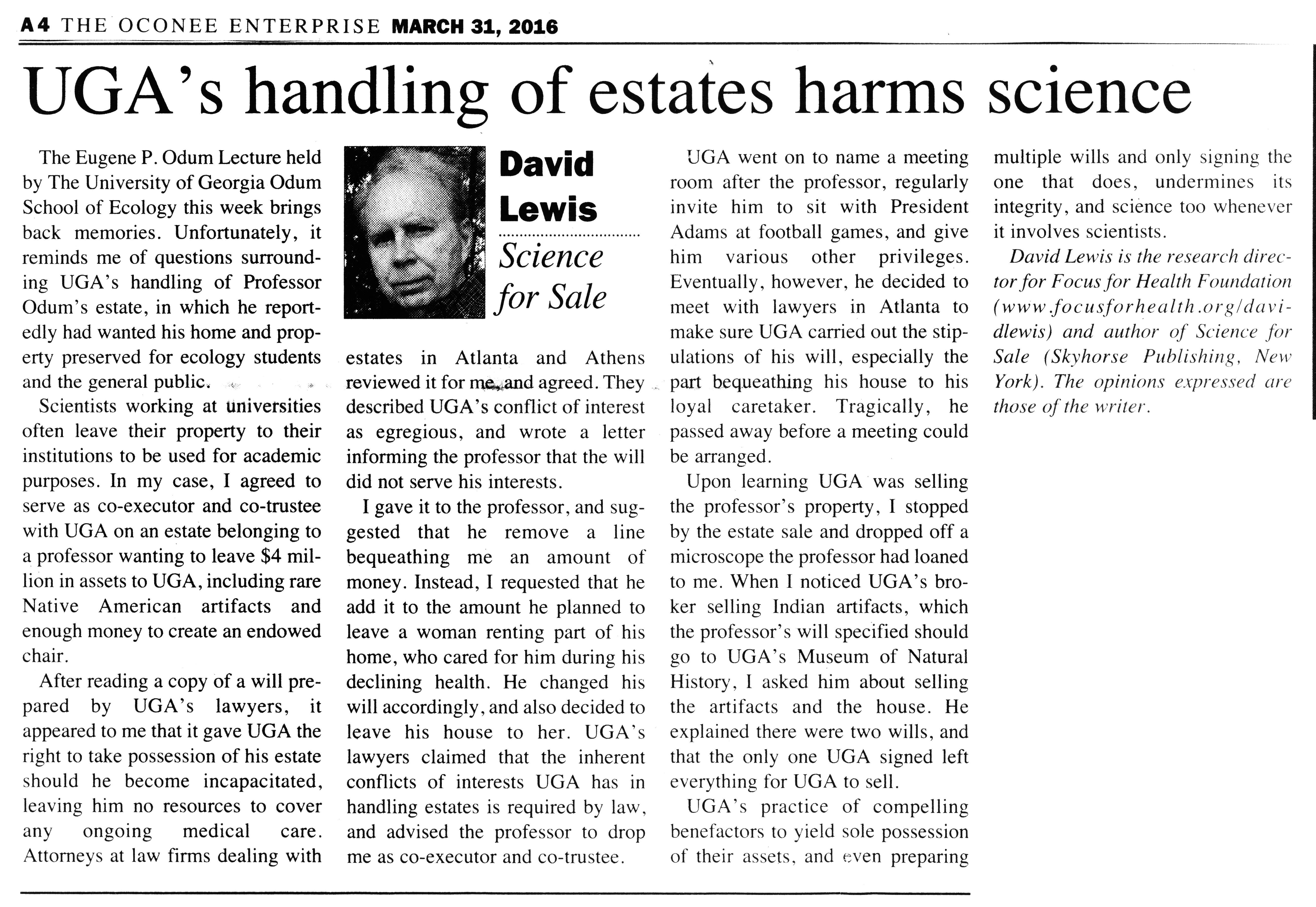 Dr. Lewis’ article posted in The Oconee Enterprise – Click to enlarge