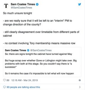 And so with the UK facing a political coup, much remains unsure, with Times deputy political editor Sam Coates tweeting that:
