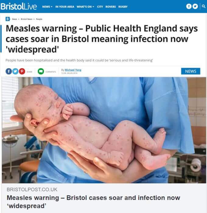 Let’s remind ourselves with the headline Measles warning – Bristol cases soar and infection now “widespread”.