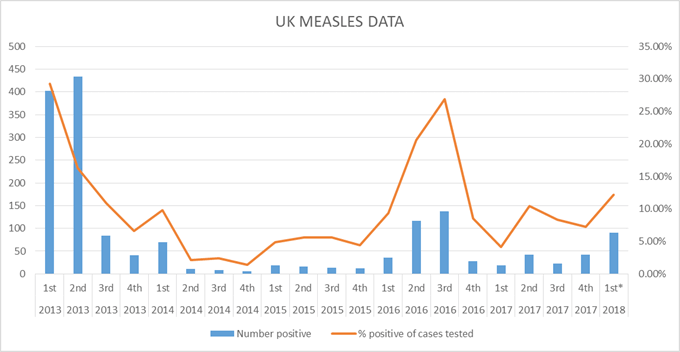 And, as I stated then: the graph clearly shows that the number of confirmed measles cases rises and falls, and that is consistent with epidemiology: measles cycles. It is an endemic infection in large populations and cannot be eradicated; goodness knows we have tried! It basically goes up and down, and when it goes up, we hear the same cries and dire warnings as demonstrated in the Bristol Post.