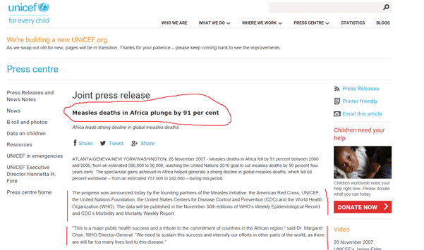SOURCE: UNICEF Measles deaths in Africa plunge by 91 per cent